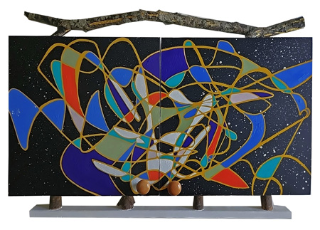 | Good Morning Good Night, 2025 (Curiousity Cabinet) Oil - Canvas and Masonite, Found Objects, Misc. Hardware 57" x 21" x 3" Open (Good Morning) 28" x 21" x 2" Closed (Goodnight) |